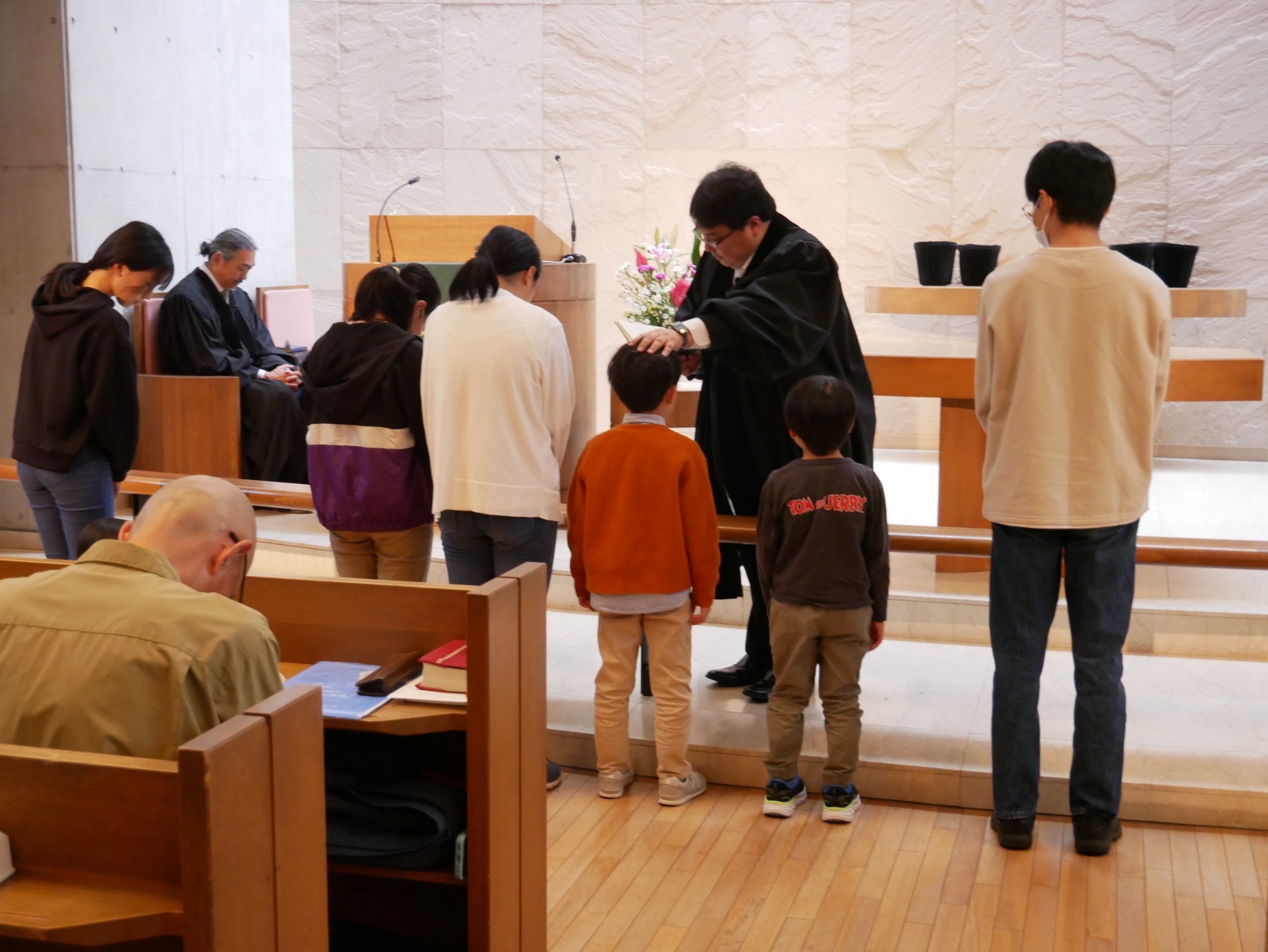 牧師先生が、ひとりずつ手をおいてお祈りしてくれました。