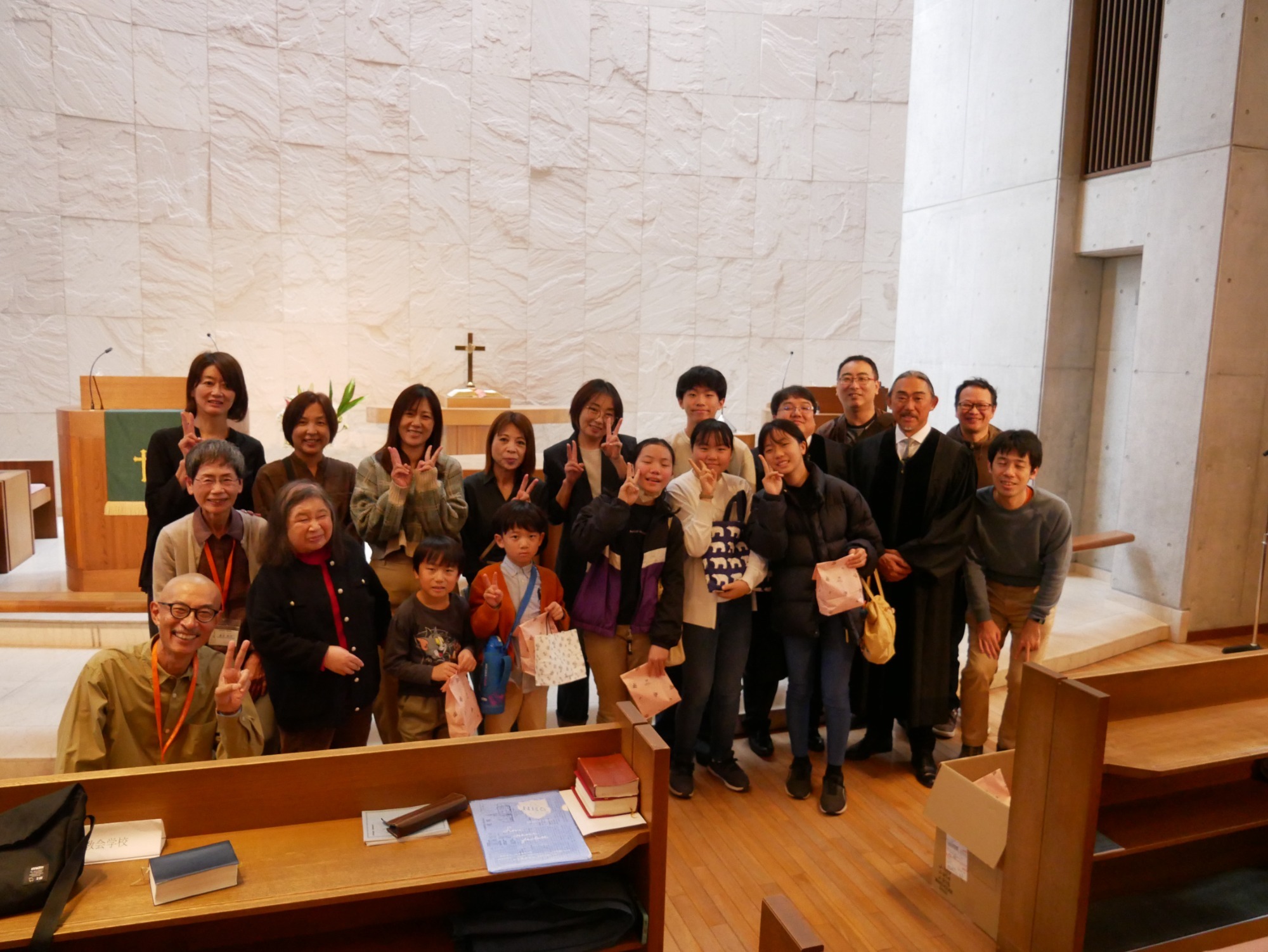 教会学校に通うお友だち、白ゆり幼稚園のお友だち、牧師先生、教会の方、幼稚園の先生たちと写真をとりました。