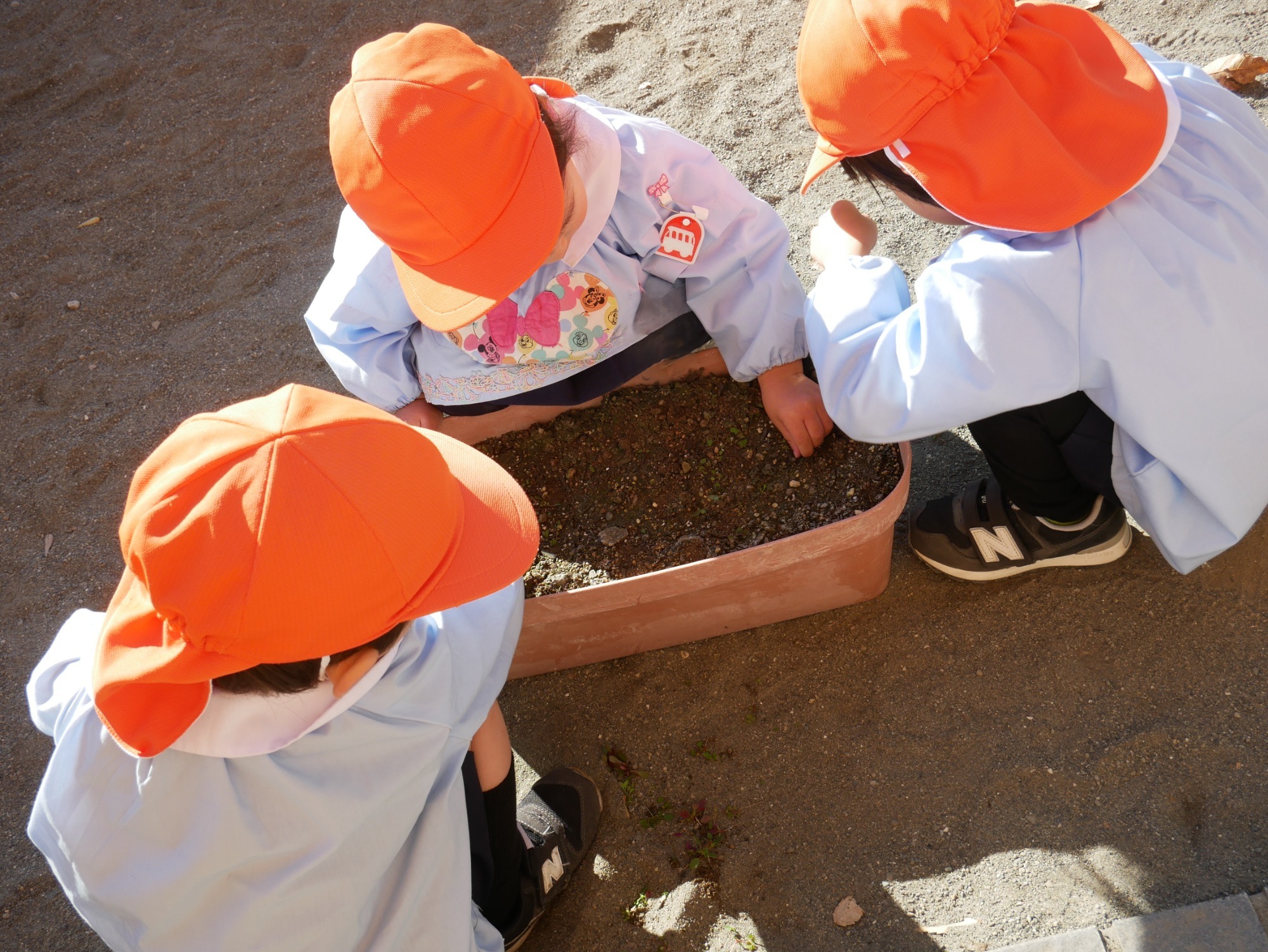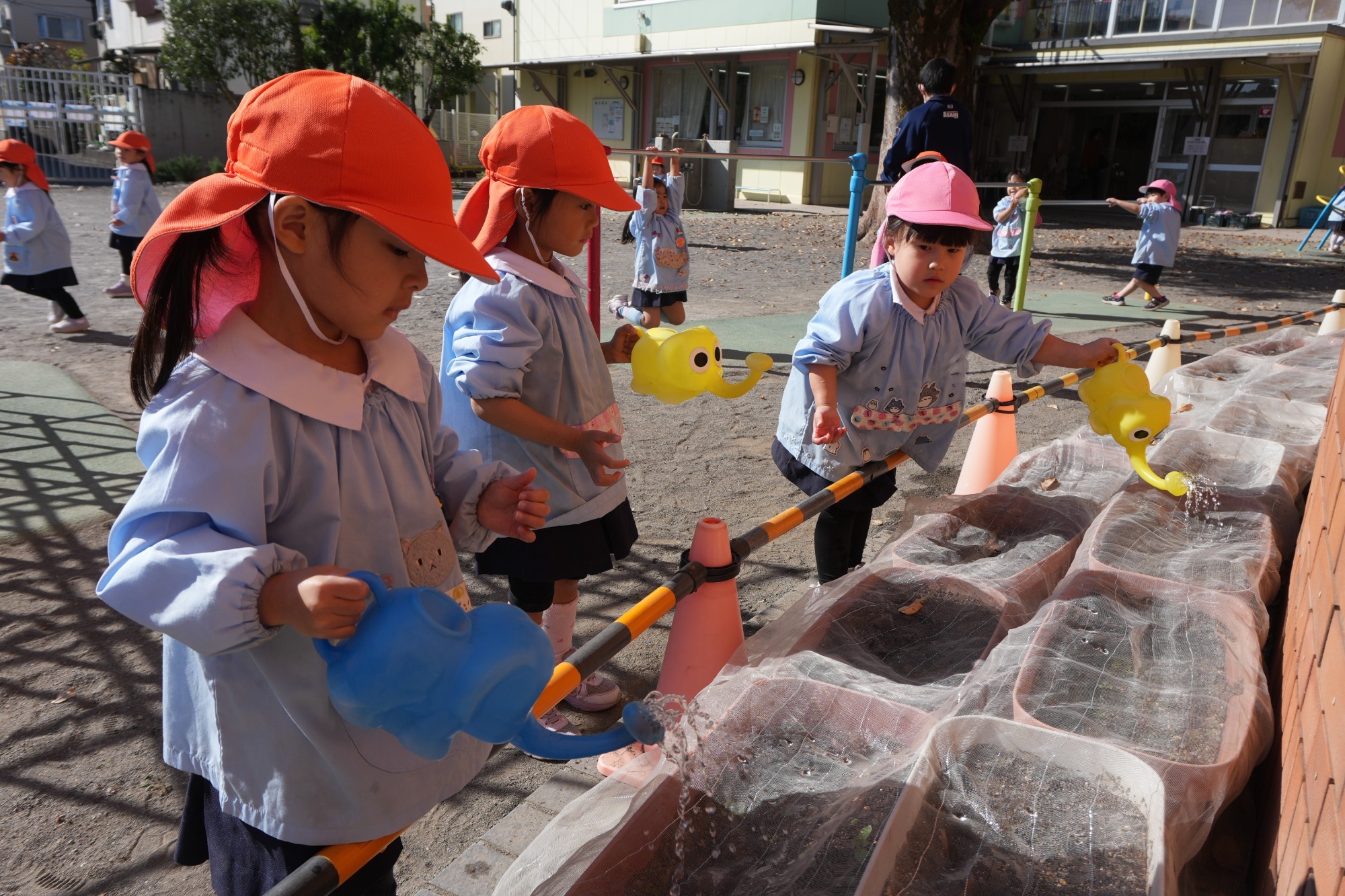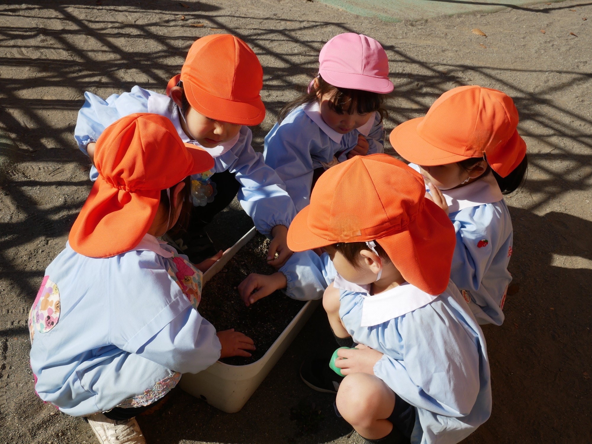 来園入園式を迎えるお友だちのために、10月にちゅうりっぷの球根を植えました。